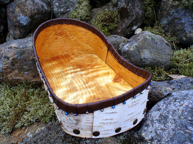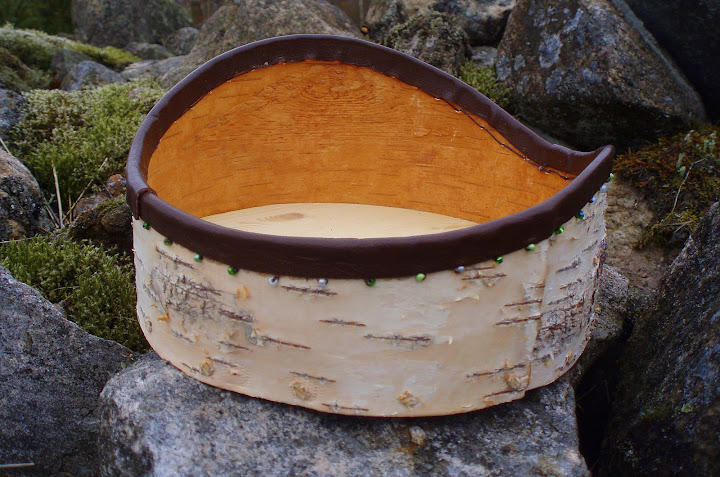 Birkebark er et meget alsidigt materiale, og ligesom de andre materialer jeg arbejder med helt igennem naturligt. Der er lange samiske traditioner for udførelse og udsmykning, og jeg startede også her, men har siden flyttet mig og har dannet mit eget udtryk.